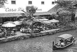 Casa Rio was the first San Antonio business to open its doors to the River and take advantage of the River's setting. Canoes, gondolas, and paddle boats, evolving into tour and dinner boats, began here and helped create the Riverwalk of today. (from http://www.casa-rio.com)