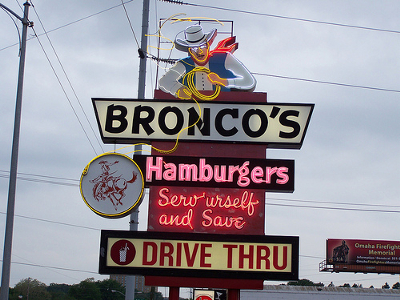 Omaha is the only place on earth to get a Big Bronco Burger, and Bronco's is still the only non-franchise fast food outlet in Omaha that is locally owned and operated.
